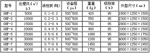 四、GHF系列|活性炭吸附過濾器設備型號及參數(shù):