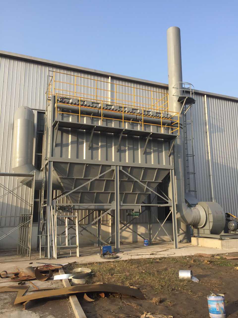 5、采用上部抽袋方式,換袋時(shí)抽出骨架后,臟袋投入箱體下部灰斗,由人孔處取出,了換袋操作條件?!?、進(jìn)、出口風(fēng)道布置緊湊,氣流阻力小。